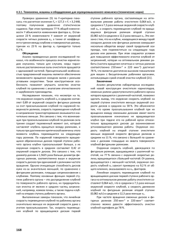 Задача качественной очистки корнеплодов от почвы актуальна как при уборке, так и при их подготовке к скармливанию животным. Наиболее востребованы в настоящее время машины для сухой очистки корнеплодов со щеточными рабочими органами. К недостаткам таких машин можно отнести повышенную травмируемость клубней при улучшении качества очистки. Цель исследований - изучение особенности кинематики клубней картофеля в инновационном очистителе корнеплодов для последующей оптимизации режимов его работы. Очистка клубней в машине происходит за счет вращения соседних роликов с разной частотой. При этом клубни за счет проскальзывания по поверхности роликов очищаются от налипшей на них почвы. В результате проведенных лабораторных исследований получена адекватная зависимость окружной скорости наружной поверхности клубня 0)0 от окружных скоростей нечетных и четных роликов. Выявлено, что примерно на 77 % зависит от окружной скорости ролика, вращающегося с большей частотой и только на 9,2 % - от окружной скорости соседнего ролика. Линейная скорость перемещения клубней по вращающимся дискам первой ступени рабочего органа на оптимальном режиме работы очистителя составляет 0,064 м/с, что в среднем в 7,5 раза меньше окружной скорости клубней, а скорость движения клубней по фигурным роликам второй ступени, которая равна 0,082 м/c, в среднем в 12,3 раза меньше окружной скорости клубней. Определено, что при частоте вращения смежных фигурных роликов 250 мин-1 и 220 мин-1 можно довести эффективность очистки клубней картофеля до 78 %.