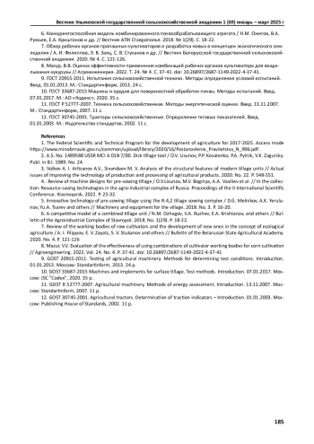 3. Волков А. И. Артизанов А. В., Сивандаев М. В. Анализ конструкционных особенностей современных поч-вобрабатывающих агрегатов // Актуальные вопросы совершенствования технологии производства и переработки продукции сельского хозяйства. 2020. № 22. С. 548-551. EDN: ALJZNA