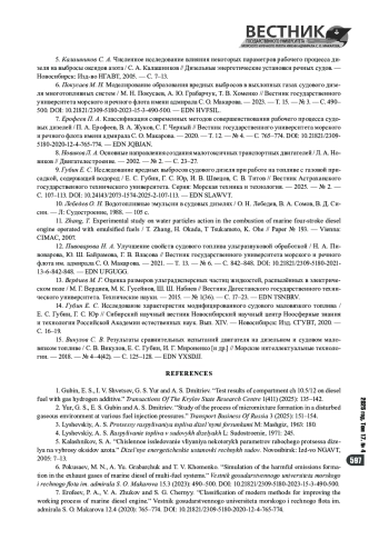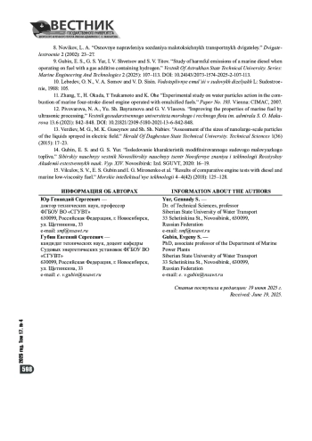 Ключевые фразы: топливо дизельное, маловязкое судовое топливо, распыливание, дифференциальные и интегральные характеристики, высоковольтный электрический заряд, расход топлива, загрязняющие вещества, рабочий процесс дизеля, температура отработавших газов, процессы смесеобразования, качество распыливания
