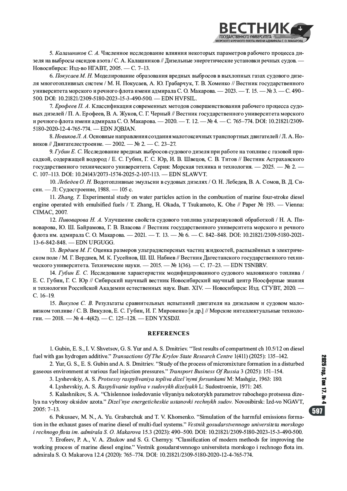 ЮР Г. С., ГУБИН Е. С. РАСЧЕТ И АНАЛИЗ ОТНОСИТЕЛЬНЫХ ХАРАКТЕРИСТИК РАСПЫЛИВАНИЯ ДИЗЕЛЬНОГО ДИСТИЛЛЯТНОГО И МАЛОВЯЗКОГО СУДОВОГО ТОПЛИВА // ВЕСТНИК ГОСУДАРСТВЕННОГО УНИВЕРСИТЕТА МОРСКОГО И РЕЧНОГО ФЛОТА ИМ. АДМИРАЛА С. О. МАКАРОВА. 2025. Т. 17 №4