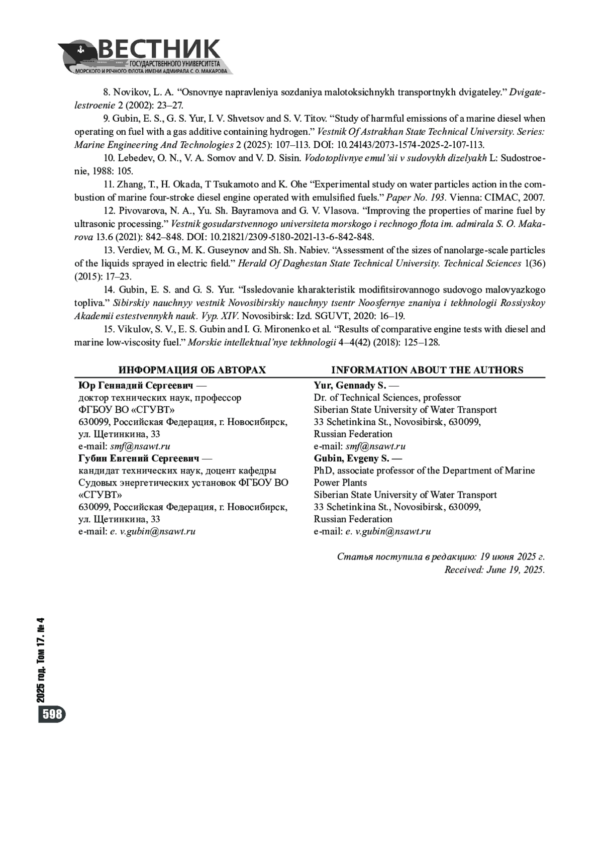 Журнал: ВЕСТНИК ГОСУДАРСТВЕННОГО УНИВЕРСИТЕТА МОРСКОГО И РЕЧНОГО ФЛОТА ИМ. АДМИРАЛА С. О. МАКАРОВА