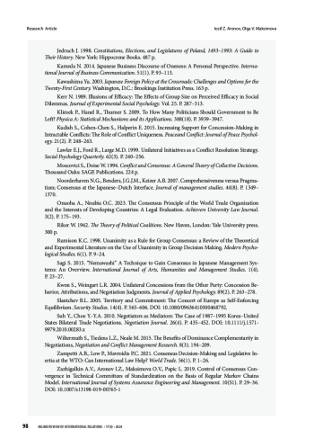 17. Kudish S., Cohen-Chen S., Halperin E. 2015. Increasing support for concession-making in intractable conflicts: The role of conflict uniqueness. Peaceand Conflict: Journal of Peace Psychology. 21(2). P. 248-263.