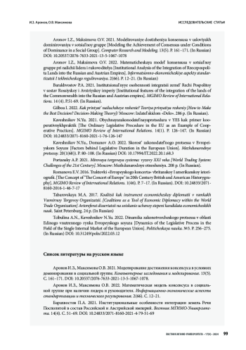 31. Аронов И.З., Максимова О.В.2021.Моделирование достижения консенсуса в условиях доминирования в социальной группе. Компьютерные исследование и моделирование. 13(5). С. https://doi.org/171.DOI: 10.20537/2076-7633-2021-13-5-1067-1078.