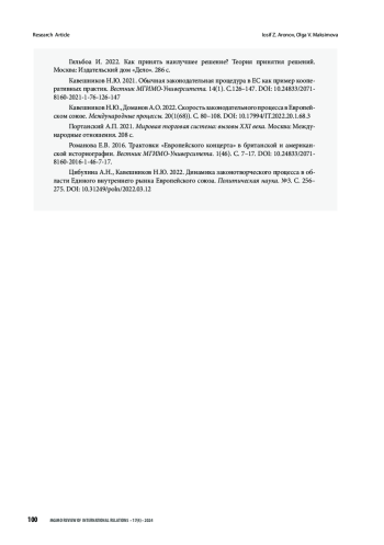 29. Zampetti A. B., Low P., Mavroidis P. C. 2021. Consensus Decision-Making and Legislative Inertia at the WTO: Can International Law Help? World Trade. 56(1). P. 1-26.