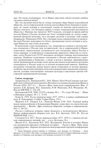 Статья: ОСОБЕННОСТИ ОБРАЗА РОССИИ В СОВРЕМЕННОМ ИРАНЕ: ИСТОРИЧЕСКИЕ ПРЕДПОСЫЛКИ ФОРМИРОВАНИЯ И СОВРЕМЕННОЕ СОСТОЯНИЕ (2025)