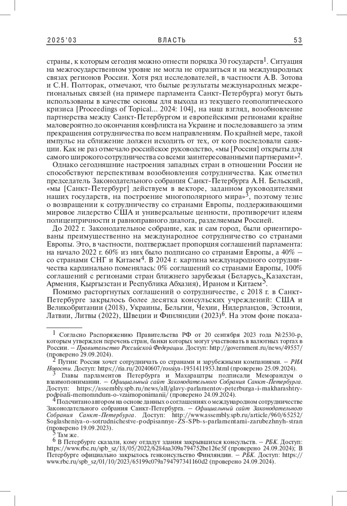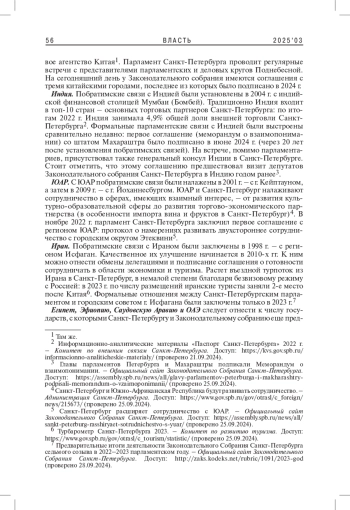 САВЕЛЬЧЕВ Л. А. МЕЖДУНАРОДНОЕ СОТРУДНИЧЕСТВО ПАРЛАМЕНТА САНКТ-ПЕТЕРБУРГА С РЕГИОНАМИ СТРАН - ЧЛЕНОВ БРИКС+ // ВЛАСТЬ. 2025. ТОМ 33 № 3