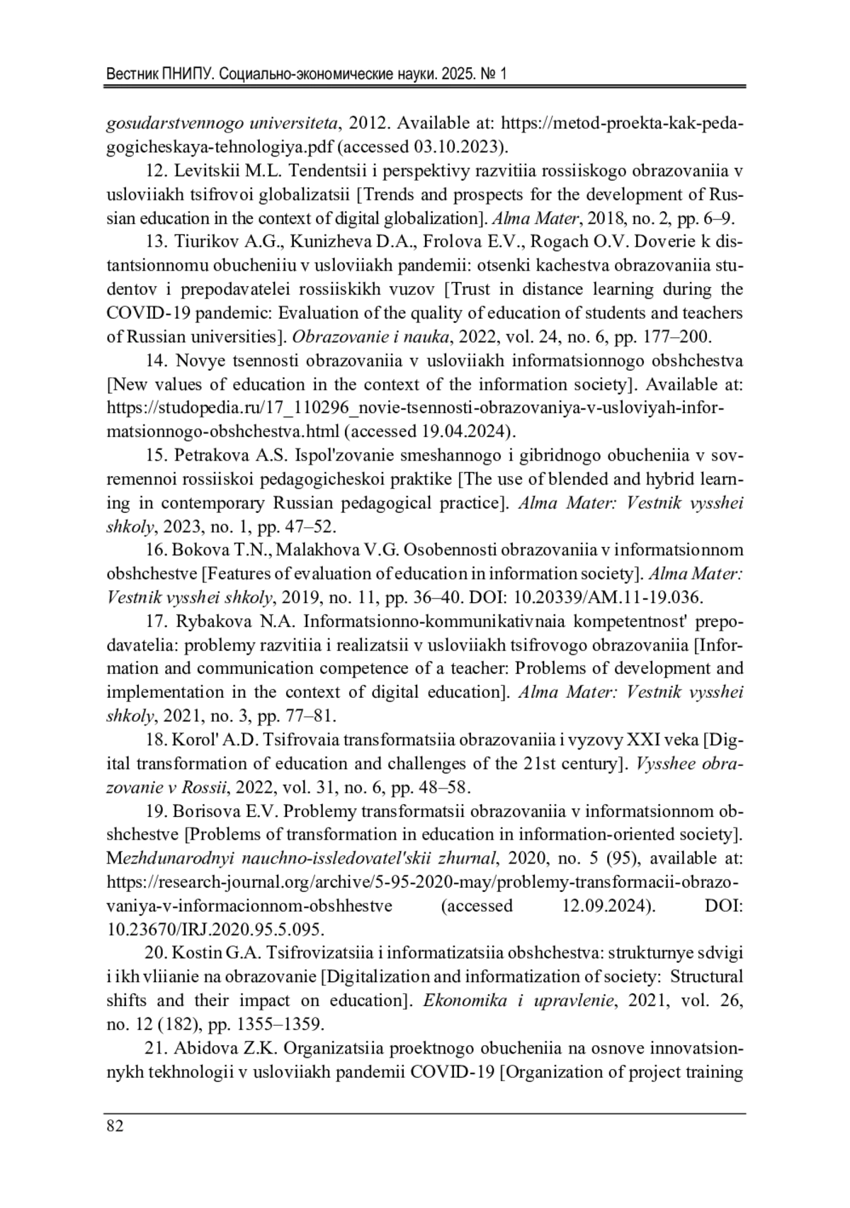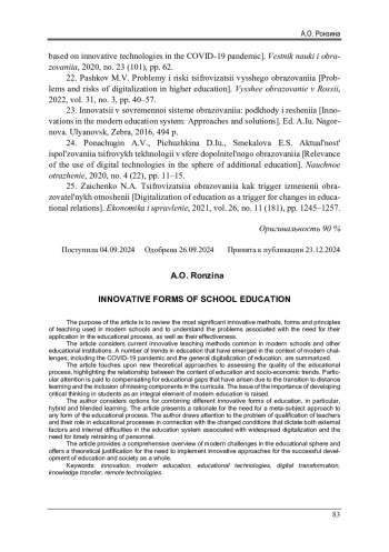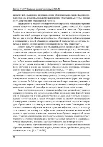РОНЗИНА А. О. ИННОВАЦИОННЫЕ ФОРМЫ ОБУЧЕНИЯ В ШКОЛЕ // ВЕСТНИК ПЕРМСКОГО НАЦИОНАЛЬНОГО ИССЛЕДОВАТЕЛЬСКОГО ПОЛИТЕХНИЧЕСКОГО УНИВЕРСИТЕТА. СОЦИАЛЬНО-ЭКОНОМИЧЕСКИЕ НАУКИ. 2025. № 1
