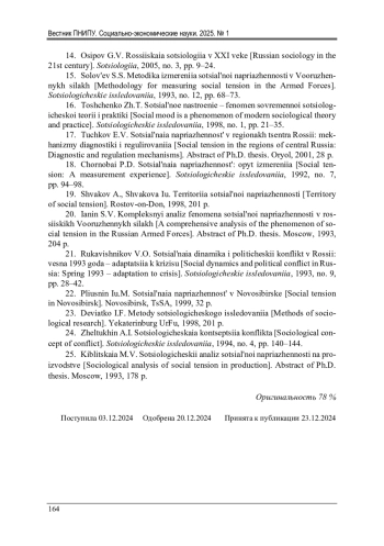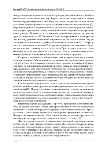 КОЛОТЕВ А. И. ТЕОРЕТИЧЕСКИЕ И МЕТОДОЛОГИЧЕСКИЕ АСПЕКТЫ ИССЛЕДОВАНИЯ СОЦИАЛЬНОЙ НАПРЯЖЕННОСТИ В ВОИНСКОМ КОЛЛЕКТИВЕ // ВЕСТНИК ПЕРМСКОГО НАЦИОНАЛЬНОГО ИССЛЕДОВАТЕЛЬСКОГО ПОЛИТЕХНИЧЕСКОГО УНИВЕРСИТЕТА. СОЦИАЛЬНО-ЭКОНОМИЧЕСКИЕ НАУКИ. 2025. № 1