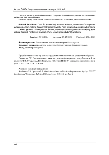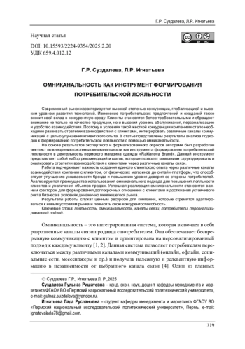 Современный рынок характеризуется высокой степенью конкуренции, глобализацией и высоким уровнем развития технологий. Изменение потребительских предпочтений и ожиданий также вносит свой вклад в конкурентную среду. Клиенты становятся более требовательными и обращают внимание не только на качество продукции, но и высокий уровень обслуживания, персонализацию и удобство взаимодействия. Поэтому в условиях такой жесткой конкуренции компаниям стало необходимо развивать стратегии взаимодействия с клиентами, интегрировать различные каналы коммуникаций с целью улучшения клиентского опыта. В статье представлены результаты анализа подходов к формированию потребительской лояльности с помощью омниканальности. На основе результатов экспертного и формализованного опросов авторами был разработан чек-лист по внедрению системы омниканальности как инструмента формирования потребительской лояльности в деятельность пермского магазина одежды «Raklanova Brand». Данный инструмент представляет собой набор рекомендаций и шагов, которые позволят компаниям структурировать и реализовать стратегии взаимодействия с клиентами через различные каналы связи. Работа подчеркивает важность создания единого клиентского опыта через различные каналы взаимодействия компании с клиентом, от физических магазинов до онлайн-платформ, что способствует улучшению узнаваемости бренда и повышению уровня доверия со стороны потребителей. Анализируются преимущества использования омниканального подхода для повышения лояльности клиентов и увеличения объемов продаж. Успешная реализация омниканальности становится важным фактором для формирования долгосрочных отношений с клиентами и достижения устойчивого роста бизнеса в условиях динамично меняющегося рынка. Результаты работы служат ценным ресурсом для компаний, которые стремятся адаптироваться к новым условиям рынка и повысить свою конкурентоспособность.