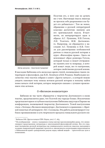 Строго говоря, в философии В. В. Бибихина не было места для обсуждения русской литературы как отдельного явления, также его мало интересовала и русская философия в отрыве от мировой философской традиции. Но тема России и «нашего положения в мире» стала для него одной из ключевых. Это видно и по дневниковым записям 1970-1980-х годов, и по статьям эпохи Перестройки, и по выступлениям и лекциям 1990-х – начала 2000-х годов. Для Бибихина нет принципиальной разницы между философией и литературой, поскольку и там, и там можно найти живую свободную мысль, не подчиняющуюся каким-либо формальным правилам и придуманным регламентам. Философу претит попытка превратить философию и литературу в России в подобие идеологии или предметы особого поклонения и гордости, своеобразные особо ценные музейные экспонаты.