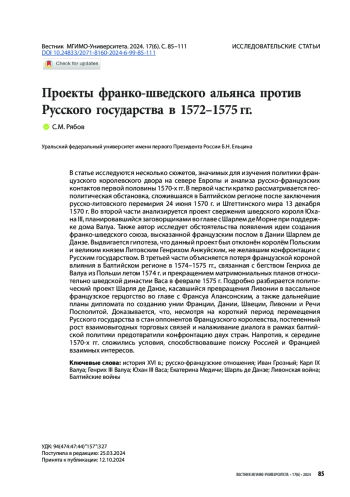 В статье исследуются несколько сюжетов, значимых для изучения политики французского королевского двора на севере Европы и анализа русско-французских контактов первой половины 1570-х гг. В первой части кратко рассматривается геополитическая обстановка, сложившаяся в Балтийском регионе после заключения русско-литовского перемирия 24 июня 1570 г. и Штеттинского мира 13 декабря 1570 г. Во второй части анализируется проект свержения шведского короля Юхана III, планировавшийся заговорщиками во главе с Шарлем де Морне при поддержке дома Валуа. Также автор исследует обстоятельства появления идеи создания франко-шведского союза, высказанной французским послом в Дании Шарлем де Данзе. Выдвигается гипотеза, что данный проект был отклонён королём Польским и великим князем Литовским Генрихом Анжуйским, не желавшим конфронтации с Русским государством. В третьей части объясняется потеря французской короной влияния в Балтийском регионе в 1574–1575 гг., связанная с бегством Генриха де Валуа из Польши летом 1574 г. и прекращением матримониальных планов относительно шведской династии Васа в феврале 1575 г. Подробно разбирается политический проект Шарля де Данзе, касавшийся превращения Ливонии в вассальное французское герцогство во главе с Франсуа Алансонским, а также дальнейшие планы дипломата по созданию унии Франции, Дании, Швеции, Ливонии и Речи Посполитой. Доказывается, что, несмотря на короткий период перемещения Русского государства в стан оппонентов Французского королевства, постепенный рост взаимовыгодных торговых связей и налаживание диалога в рамках балтийской политики предотвратили конфронтацию двух стран. Напротив, к середине 1570-х гг. сложились условия, способствовавшие поиску Россией и Францией взаимных интересов.