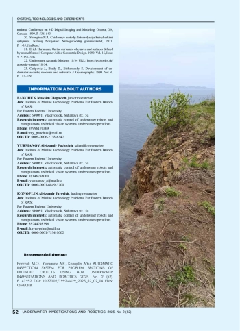 2. Zingaretti P., Zanoli S.M. Robust real-time detection of an underwater pipeline // Engineering Applications of Artificial Intelligence. 1998. Vol. 11, Issue 2. P. 257-268.