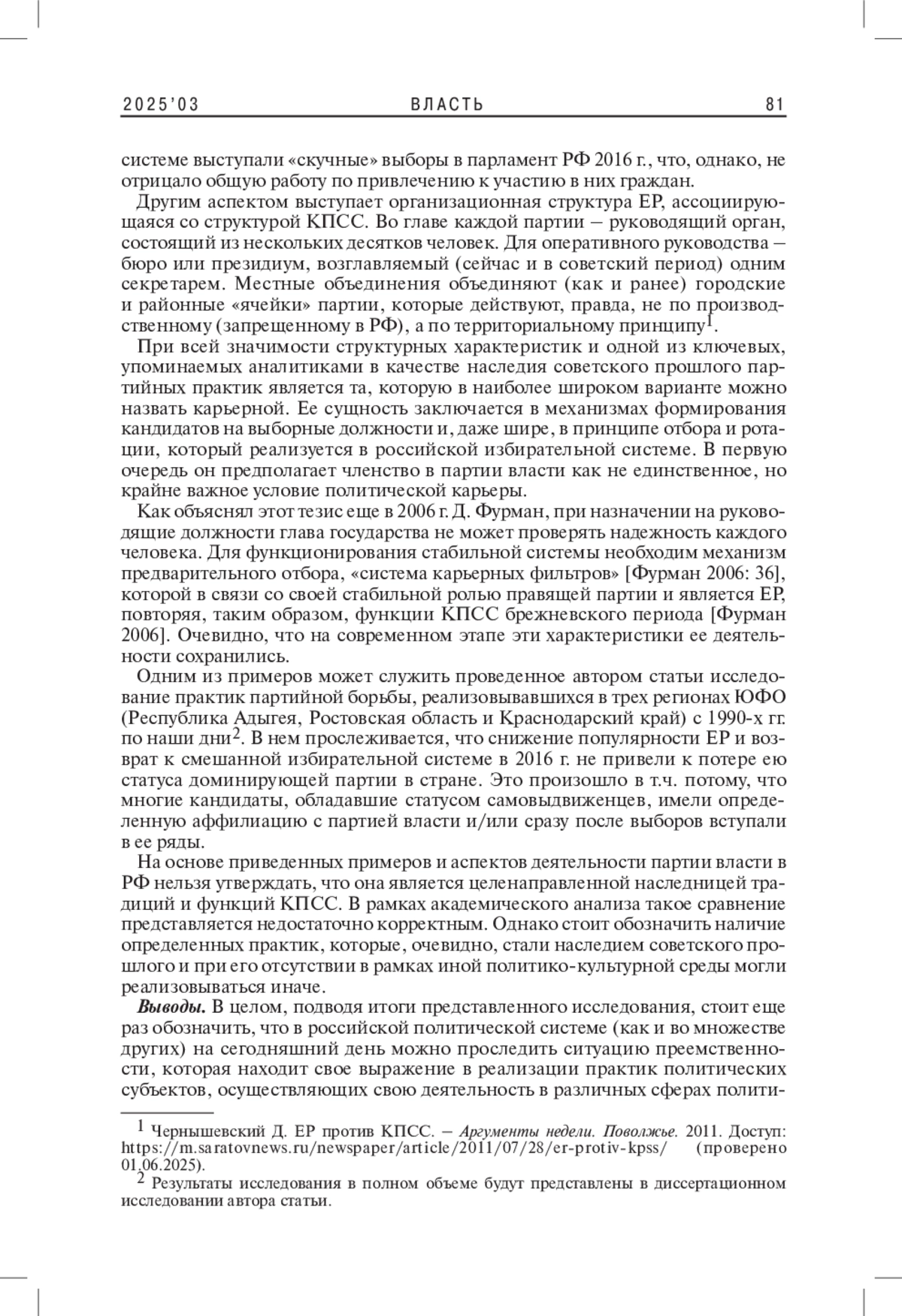 4. Фурман Д. 2006. Возвращение партии. - Россия и мусульманский мир. № 6. C. 33-39. EDN: HUCWAN
