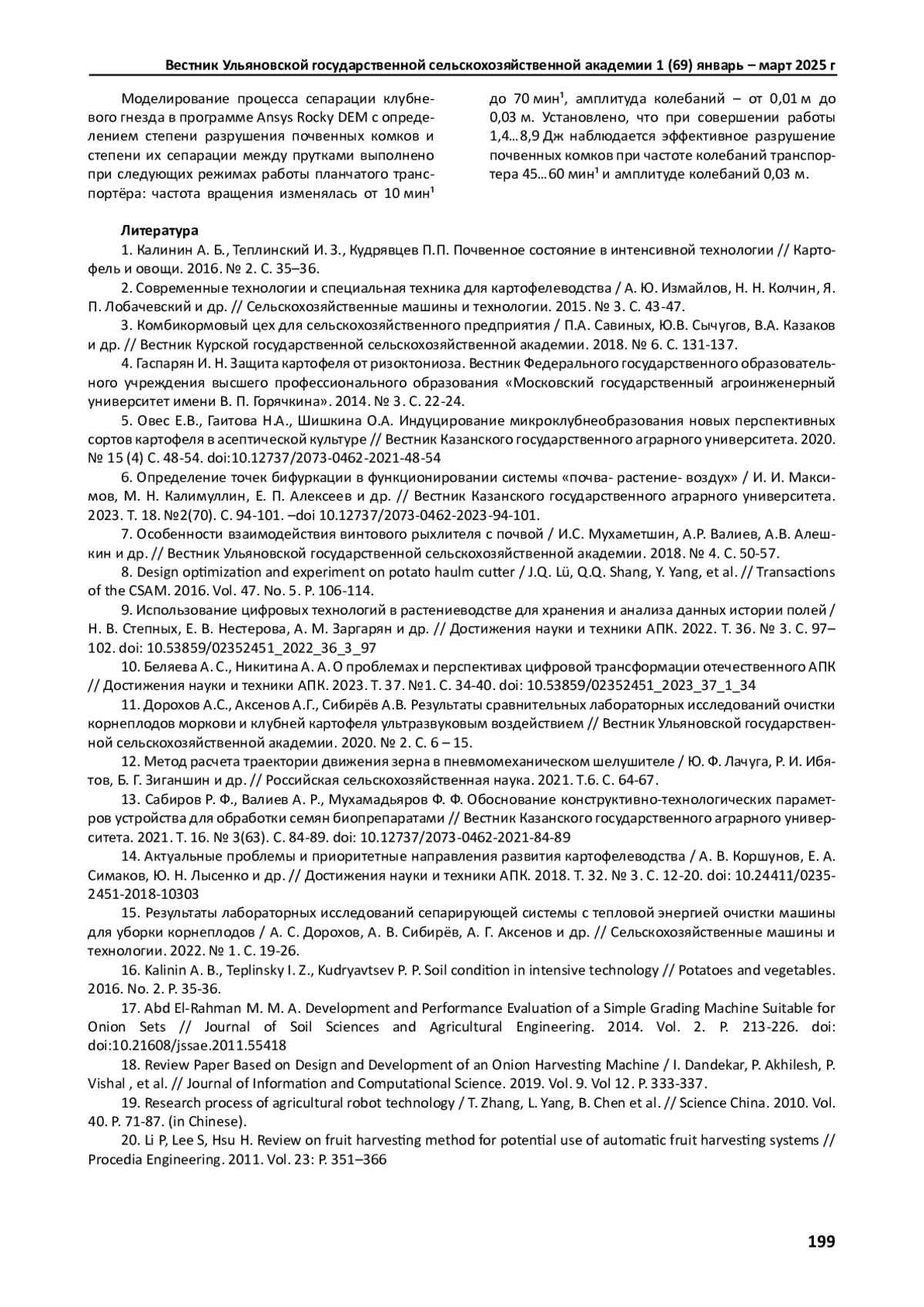 ДОРОХОВ А. С., СИБИРЁВ А. В., ТЕТЕРИН В. С. ТЕОРЕТИЧЕСКИЕ ПРЕДПОСЫЛКИ РАЗРАБОТКИ РАБОЧИХ ОРГАНОВ АВТОМАТИЗИРОВАННОЙ МАШИНЫ ДЛЯ УДАЛЕНИЯ ИЗ ПОЧВЫ ЗАРАЖЕННЫХ РАСТЕНИЙ КАРТОФЕЛЯ И ОВОЩНЫХ КУЛЬТУР // ВЕСТНИК УЛЬЯНОВСКОЙ ГОСУДАРСТВЕННОЙ СЕЛЬСКОХОЗЯЙСТВЕННОЙ АКАДЕМИИ. 2025. № 1 (69)