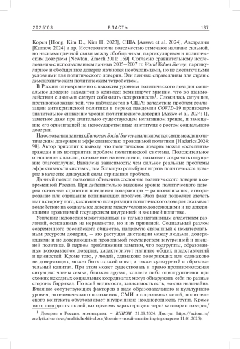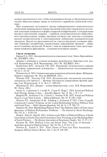 3. Кириленко В.П., Алексеев Г.В. 2021. Измерение политического доверия в условиях современной демократии. - Управленческое консультирование. № 10. С. 22-34. EDN: ATXPUA