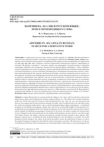 8. Черепанова О. А. Об одном непродуктивном типе наречий в русском языке // Исследования по грамматике русского языка. Л., 1973. Вып. 5. С. 198-214.
