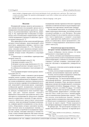 Ключевые фразы: ПОЛИКОДОВЫЙ ТЕКСТ, мем, медицинский дискурс, русский язык, комический жанр