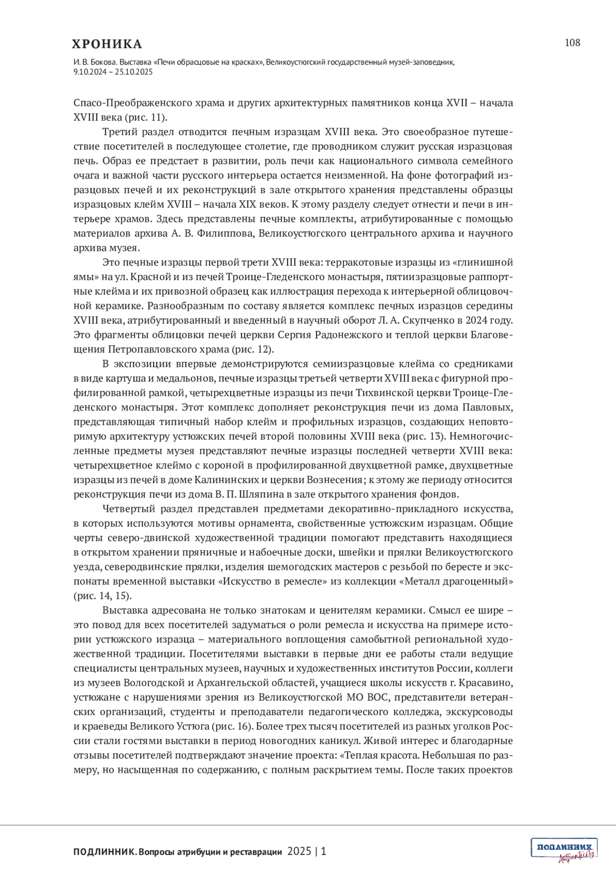 «Печи обрасцовые на красках» – выставка с таким названием открылась 9 октября 2024 года в зале открытого хранения фондов Великоустюгского государственного музея-заповедника и представляет художественную традицию, присущую изразцовому делу Великого Устюга. Ее оригинальные черты раскрывают предметы из коллекции музея, насчитывающей более пяти тысяч экспонатов. На выставке представлено более трехсот предметов. Это отдельные изразцы, печные клейма и полностью сохраненные печные комплекты, многие из которых экспонируются впервые. Впервые показаны архивные документы, рисунки, фотографии из музейных и частных архивов и коллекций. В их числе фотографии изразцовых печей и печные комплекты, атрибуция которых стала возможной благодаря материалам архива А. В. Филиппова, предоставленным доктором искусствоведения Е. А. Бобринской (рис. 1).