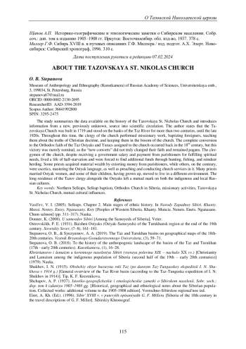 Ключевые фразы: тазовская николаевская церковь, СЕВЕРНЫЕ СЕЛЬКУПЫ, крещение селькупов, православная церковь в сибири, МИССИОНЕРСКАЯ ДЕЯТЕЛЬНОСТЬ, взаимокультурные влияния
