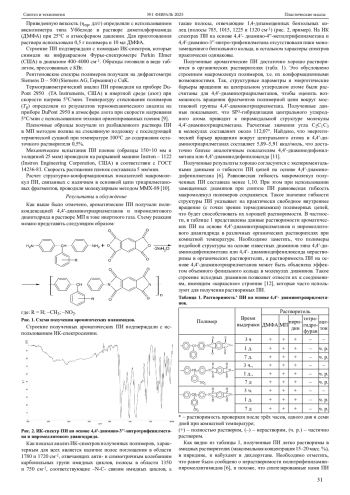 Статья: СИНТЕЗ И СВОЙСТВА ПОЛИИМИДОВ НА ОСНОВЕ 4,4'-ДИАМИНОТРИАРИЛМЕТАНОВ И ПИРОМЕЛЛИТОВОГО ДИАНГИДРИДА (2025)