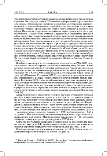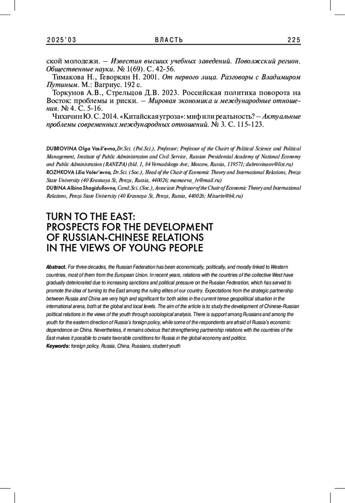 3. Ельникова Ю.В. 2024. Российский поворот на Восток: достижения, проблемы и перспективы. - Мировая политика. № 3. С. 9-20.
