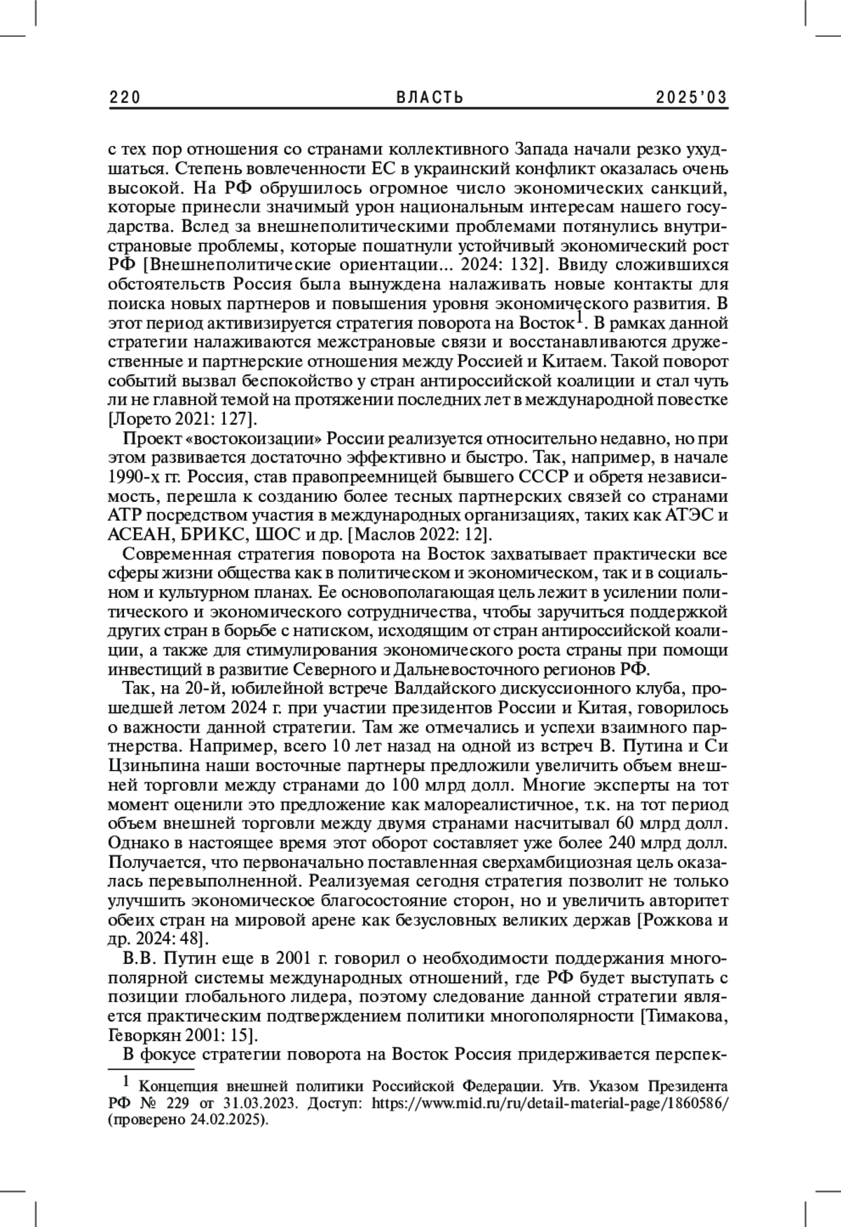 6. Маслов А. 2022. Китайский вектор России. - РСМД. 07.02.2022. Доступ: https://russiancouncil.ru/analytics-and-comments/comments/kitayskiy-vektor-rossii/(проверено 29.03.2025).