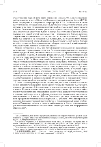 Руководство Китайской Народной Республики придает особое значение системе образования, которая рассматривается как один из основных факторов планомерного развития страны и достижения целей столетия. «Две цели столетия» соотносятся со значимыми историческими датами – столетием со дня образования Коммунистической партии Китая (2021 г.) и столетием со дня основания Китайской Народной Республики (2049 г.).