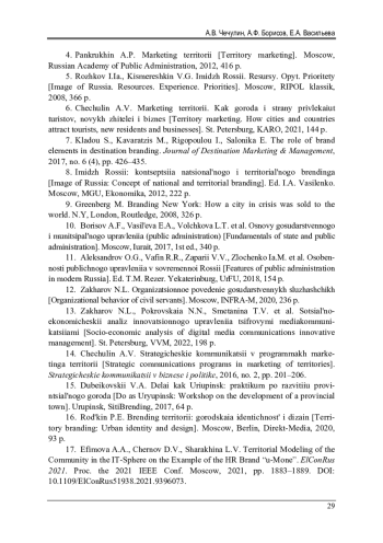 16. Родькин П.Е. Брендинг территорий: городская идентичность и дизайн: учеб. пособие. - М.; Берлин: Директ-Медиа, 2020. - 93 с. EDN: FUXBYA