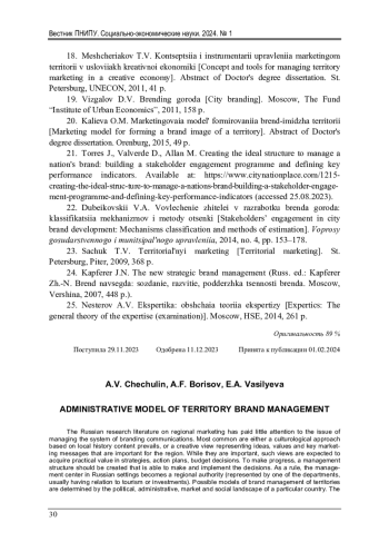 В отечественной научной литературе, посвященной тематике маркетинга территорий, практически не обсуждается вопрос управления системой брендинговых коммуникаций. Преобладает либо культурологический подход, основанный на краеведческом контенте, либо креативный взгляд, представляющий важные для региона идеи, ценности и ключевые маркетинговые сообщения. При всей своей важности подобные разработки должны в последующем иметь продолжение в стратегиях, планах мероприятий, бюджетных решениях. Для этого должна быть создана управленческая структура, способная принимать и реализовать принятые решения. Как правило, управленческим центром в российской практике становится региональный орган власти (в лице одного из ведомств, обычно так или иначе связанного с тематикой туризма или инвестиций). Возможные модели управления брендом территорий определяются политико-административным, рыночным и социальным ландшафтом конкретной страны. Иерархическая культура российской административной практики не предполагает иной схемы управления маркетинговой программой, кроме как вписанной в эту вертикаль. Такая модель имеет определенные достоинства, но существуют ограничения и риски. В статье рассмотрены также другие модели, эффективно используемые в практике городов и территорий других стран.