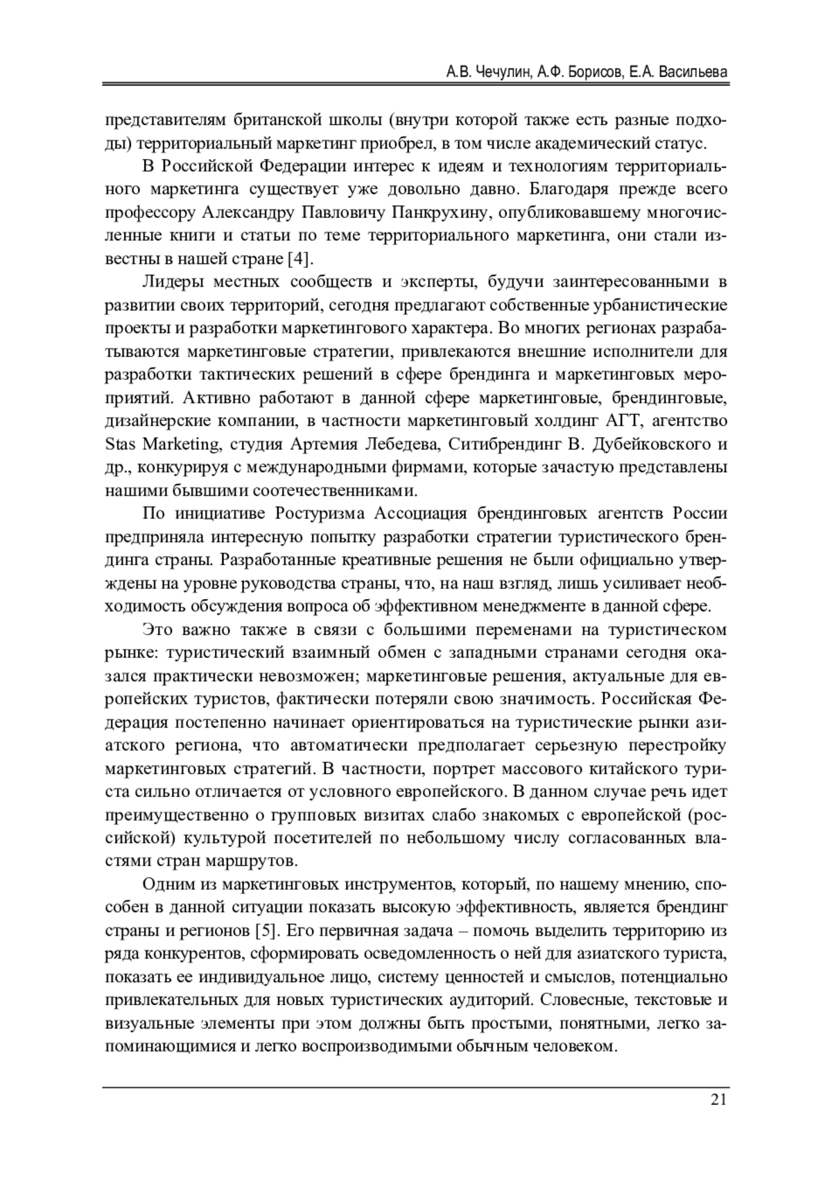 6. Чечулин А.В. Маркетинг территорий. Как города и страны привлекают туристов, новых жителей и бизнес. - СПб.: КАРО, 2021. - 144 с. EDN: IIRLZY