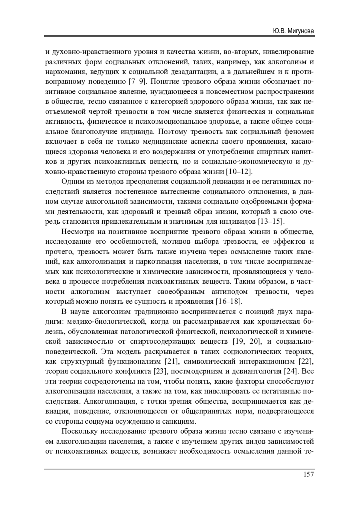 11. Белова Ю.Ю. Трезвый образ жизни: мотивы, роли, практики // Социологические исследования. - 2023. - № 1. - С. 82-94. EDN: XKUGCO