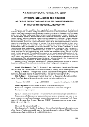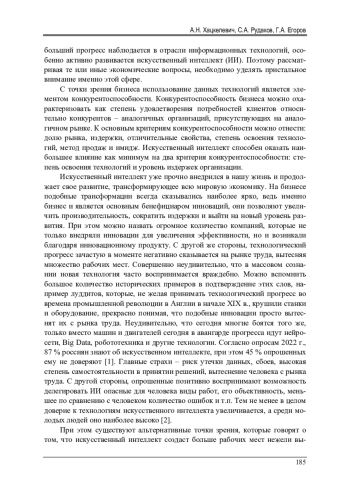 Невозможно говорить об экономике и технологиях отдельно, между этими категориями всегда будет выстраиваться прямая связь. XXI в. считается эпохой стремительного технологического прорыва во многих сферах, но наибольший прогресс наблюдается в отрасли информационных технологий, особенно активно развивается искусственный интеллект (ИИ). Поэтому рассматривая те или иные экономические вопросы, необходимо уделять пристальное внимание именно этой сфере