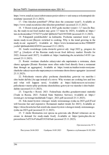 Статья: РЕГИОНАЛЬНЫЙ РЫНОК ГОТОВОЙ ЕДЫ В УСЛОВИЯХ НЕОПРЕДЕЛЕННОСТИ (2024)