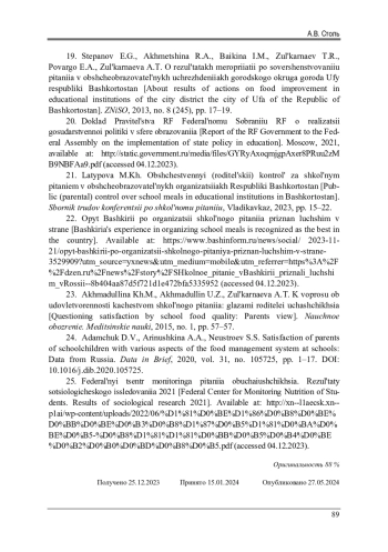 Статья: ОЦЕНКА КАЧЕСТВА ШКОЛЬНОГО ПИТАНИЯ НА ПРИМЕРЕ РЕСПУБЛИКИ БАШКОРТОСТАН (2024)