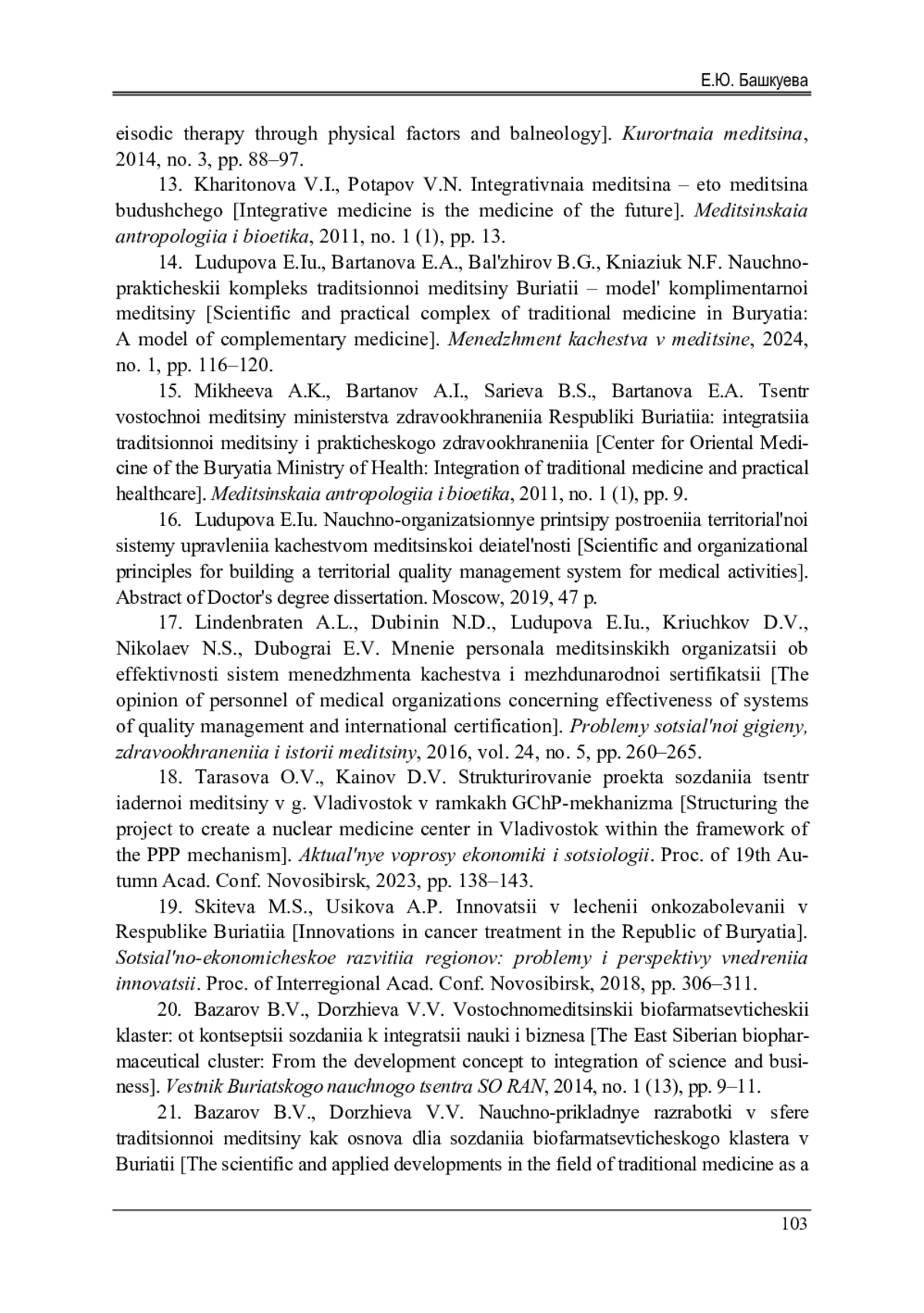 БАШКУЕВА Е. Ю. АНАЛИЗ РАЗВИТИЯ ИННОВАЦИОННОЙ И ИНТЕГРАТИВНОЙ МЕДИЦИНЫ В РЕСПУБЛИКЕ БУРЯТИЯ (ПО МАТЕРИАЛАМ СОЦИОЛОГИЧЕСКОГО ИССЛЕДОВАНИЯ) // ВЕСТНИК ПЕРМСКОГО НАЦИОНАЛЬНОГО ИССЛЕДОВАТЕЛЬСКОГО ПОЛИТЕХНИЧЕСКОГО УНИВЕРСИТЕТА. СОЦИАЛЬНО-ЭКОНОМИЧЕСКИЕ НАУКИ. 2024. № 2