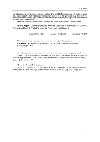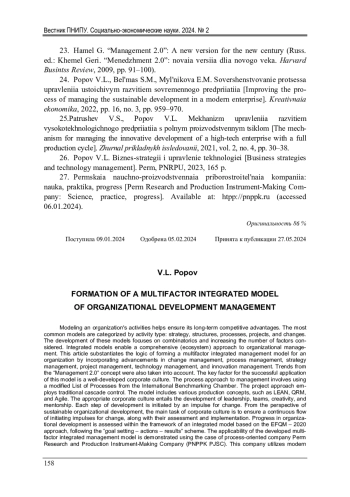 ПОПОВ В. Л. ФОРМИРОВАНИЕ МНОГОФАКТОРНОЙ ИНТЕГРИРОВАННОЙ МОДЕЛИ УПРАВЛЕНИЯ РАЗВИТИЕМ ОРГАНИЗАЦИИ // ВЕСТНИК ПЕРМСКОГО НАЦИОНАЛЬНОГО ИССЛЕДОВАТЕЛЬСКОГО ПОЛИТЕХНИЧЕСКОГО УНИВЕРСИТЕТА. СОЦИАЛЬНО-ЭКОНОМИЧЕСКИЕ НАУКИ. 2024. № 2