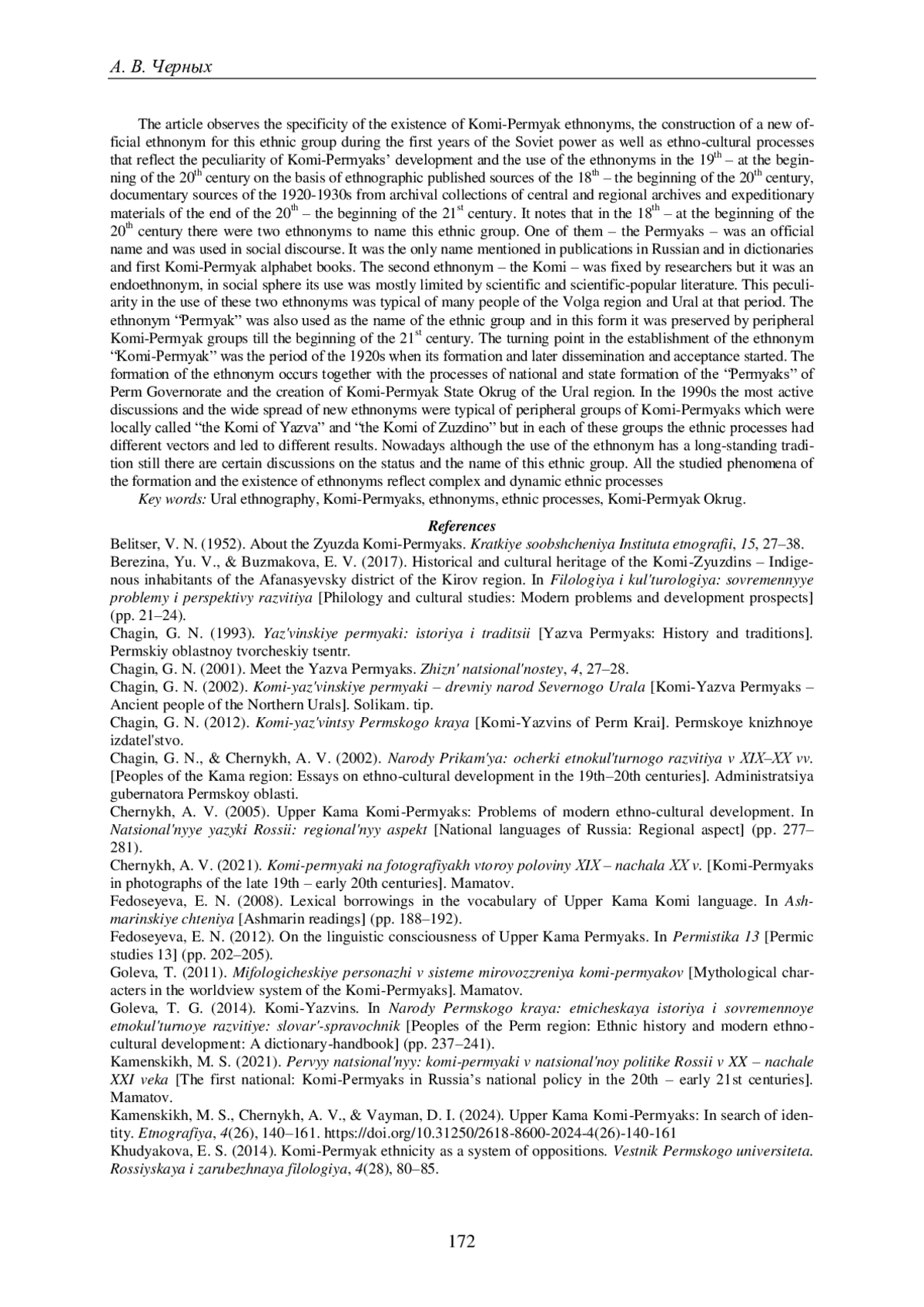 ЧЕРНЫХ А. В. ОТ ПЕРМЯКОВ И КОМИ К КОМИ-ПЕРМЯКАМ: СТАНОВЛЕНИЕ ЭТНОНИМА // ВЕСТНИК ПЕРМСКОГО УНИВЕРСИТЕТА. ИСТОРИЯ. 2025. № 2 (69)