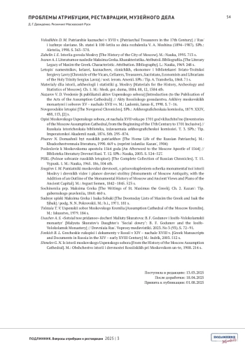 4. Борисова Т. С. О датировке древнейшей из сохранившихся описей Успенского собора // Успенский собор Московского Кремля. Материалы и исследования. М.: Наука, 1985. С. 246-259.