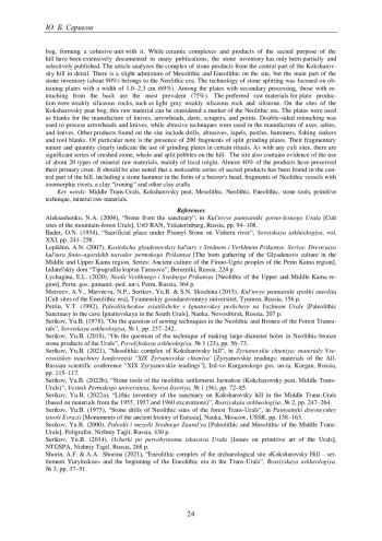 Ключевые фразы: среднее зауралье, кокшаровский торфяник, МЕЗОЛИТ, неолит, ЭНЕОЛИТ, каменный инвентарь, первобытная техника, минеральное сырье