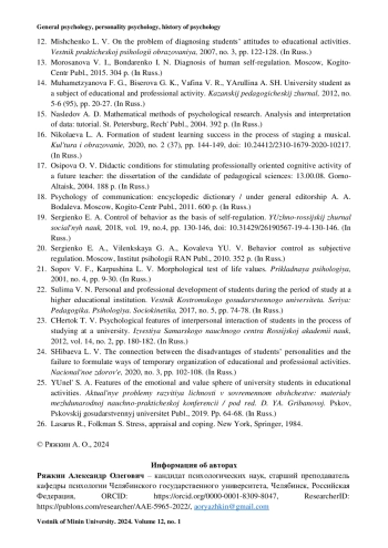 12. Мищенко Л. В. К проблеме диагностики отношения студентов к учебной деятельности // Вестник практической психологии образования. 2007. № 3. С. 122-128.