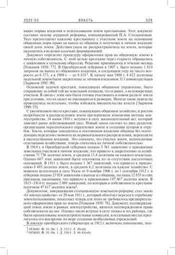 ЖАЙБАЛИЕВА Л. Т. РЕАЛИЗАЦИЯ ЗЕМЕЛЬНОЙ ПОЛИТИКИ В НАЧАЛЕ XX В. (ПО МАТЕРИАЛАМ ОРЕНБУРГСКОЙ ГУБЕРНИИ) // ВЛАСТЬ. 2025. ТОМ 33 № 3