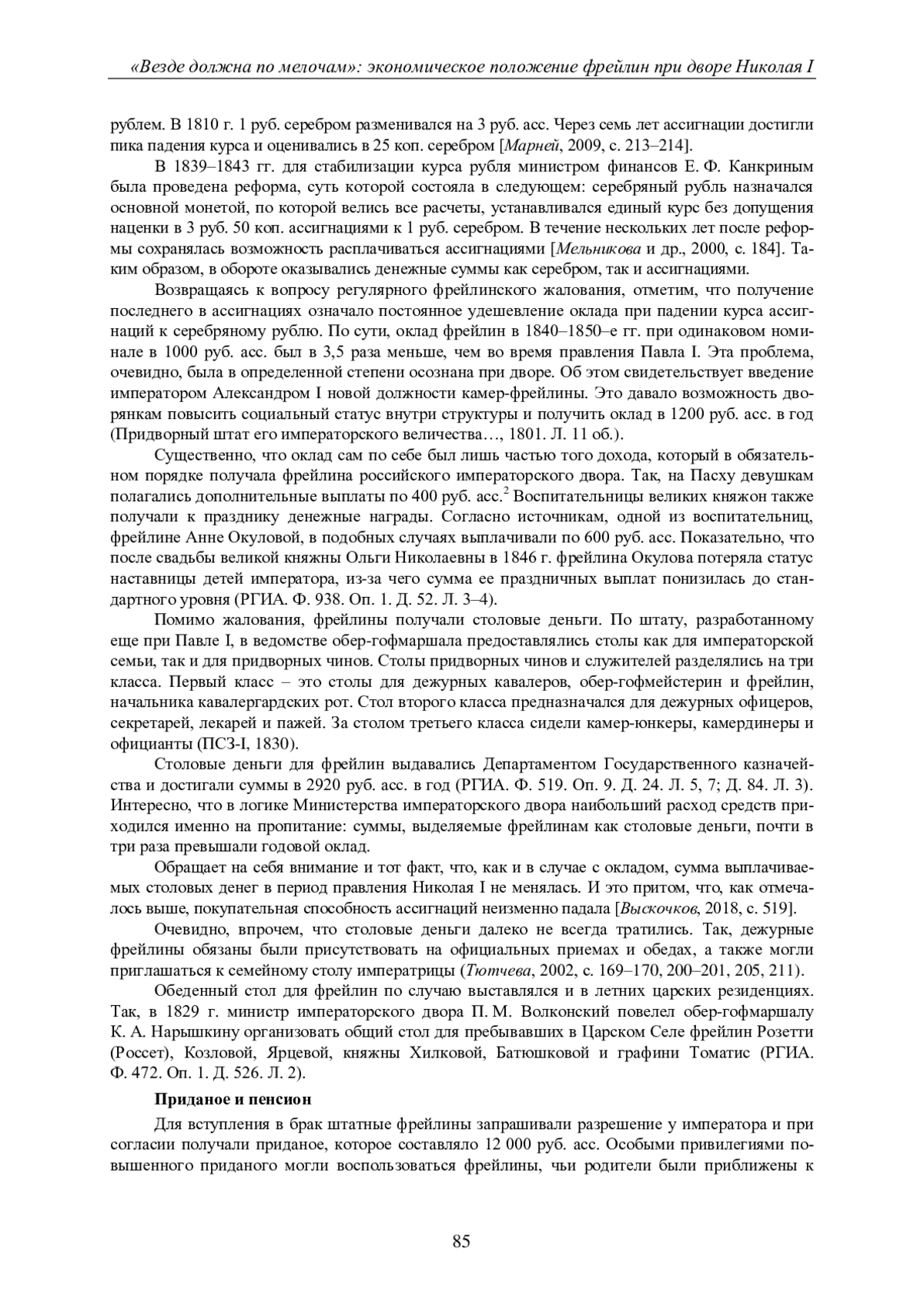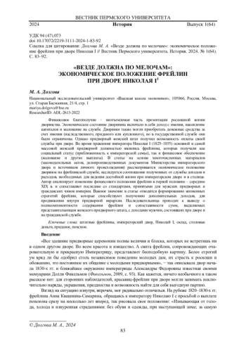 ДОЛГОВА М. А. "ВЕЗДЕ ДОЛЖНА ПО МЕЛОЧАМ": ЭКОНОМИЧЕСКОЕ ПОЛОЖЕНИЕ ФРЕЙЛИН ПРИ ДВОРЕ НИКОЛАЯ I // ВЕСТНИК ПЕРМСКОГО УНИВЕРСИТЕТА. ИСТОРИЯ. 2024. № 1 (64)