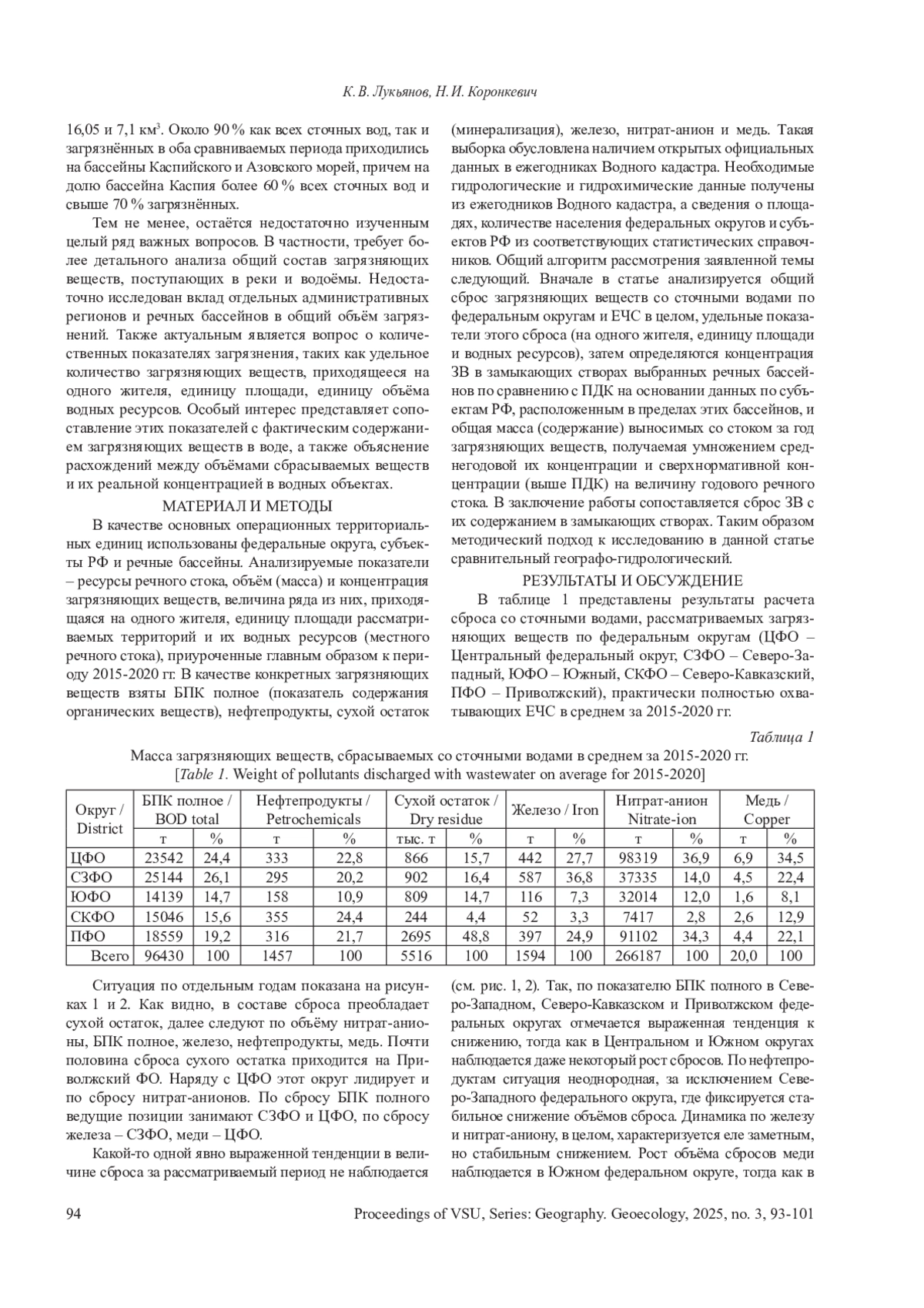 9. Лукьянов К.В., Коронкевич Н.И. Особенности распределения сточных и возвратных вод на территории европейской части России II Известия РАН. Серия географическая, 2022, т. 86, № 5, с. 763-778.