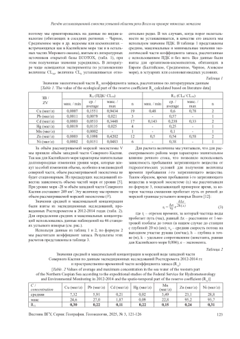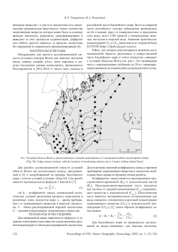 ТАТАРНИКОВ В.О., ОЧЕРЕТНЫЙ М.А. РАСЧЕТ АССИМИЛЯЦИОННОЙ ЕМКОСТИ УСТЬЕВОЙ ОБЛАСТИ РЕКИ ВОЛГИ НА ПРИМЕРЕ ТЯЖЕЛЫХ МЕТАЛЛОВ // ВЕСТНИК ВОРОНЕЖСКОГО ГОСУДАРСТВЕННОГО УНИВЕРСИТЕТА. СЕРИЯ: ГЕОГРАФИЯ. ГЕОЭКОЛОГИЯ. 2025. № 3
