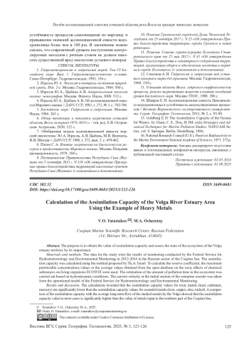 Статья: РАСЧЕТ АССИМИЛЯЦИОННОЙ ЕМКОСТИ УСТЬЕВОЙ ОБЛАСТИ РЕКИ ВОЛГИ НА ПРИМЕРЕ ТЯЖЕЛЫХ МЕТАЛЛОВ (2025)