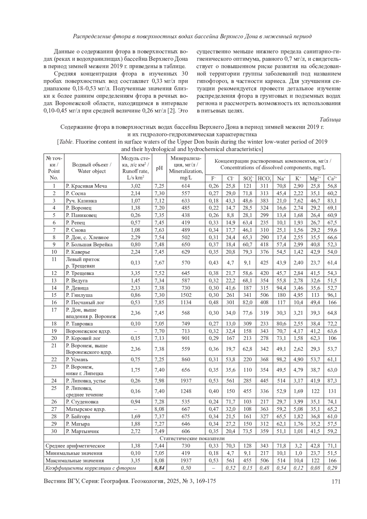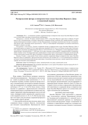 Статья: РАСПРЕДЕЛЕНИЕ ФТОРА В ПОВЕРХНОСТНЫХ ВОДАХ БАССЕЙНА ВЕРХНЕГО ДОНА В МЕЖЕННЫЙ ПЕРИОД (2025)