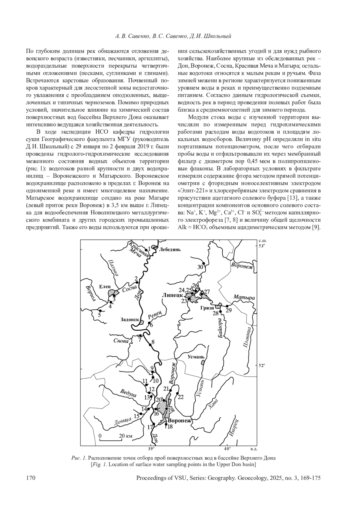 САВЕНКО А. В., САВЕНКО В. С., ШКОЛЬНЫЙ Д. И. РАСПРЕДЕЛЕНИЕ ФТОРА В ПОВЕРХНОСТНЫХ ВОДАХ БАССЕЙНА ВЕРХНЕГО ДОНА В МЕЖЕННЫЙ ПЕРИОД // ВЕСТНИК ВОРОНЕЖСКОГО ГОСУДАРСТВЕННОГО УНИВЕРСИТЕТА. СЕРИЯ: ГЕОГРАФИЯ. ГЕОЭКОЛОГИЯ. 2025. № 3
