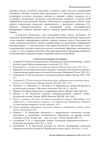 13. Скитневский Л. В. Физическая культура как средство формирования социальной конкурентоспособности личности // Физическая культура в школе. 2020. № 4. С. 18-23.