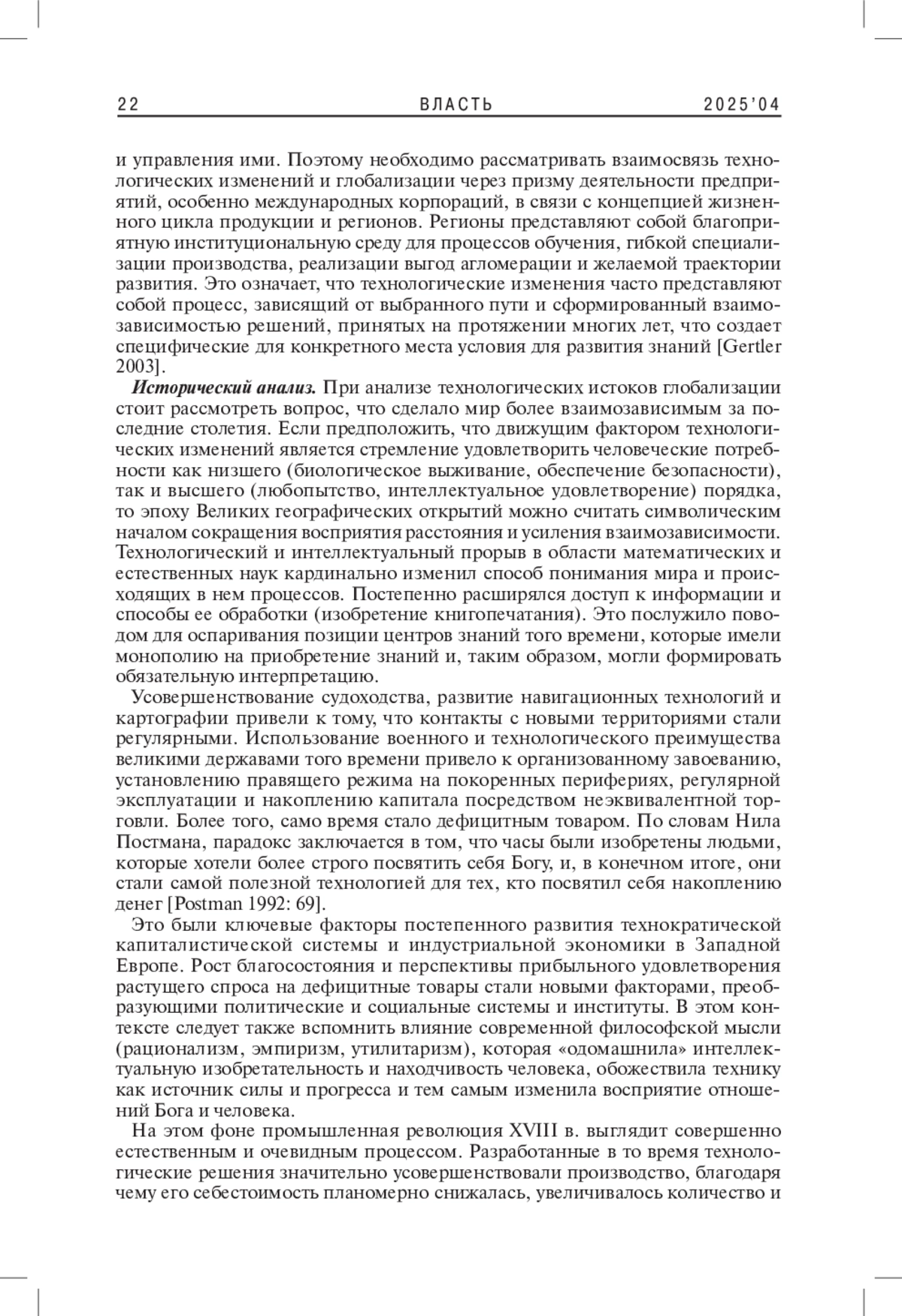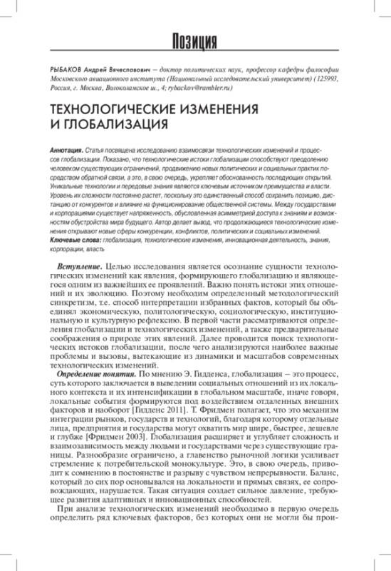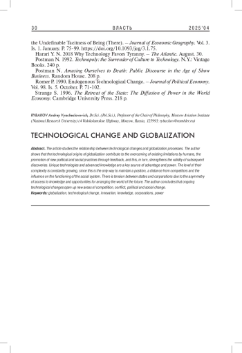РЫБАКОВ А. В. ТЕХНОЛОГИЧЕСКИЕ ИЗМЕНЕНИЯ И ГЛОБАЛИЗАЦИЯ // ВЛАСТЬ. 2025. ТОМ 33 № 4