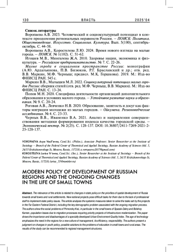 1. Воропаева А.В. 2023. Человеческий и социокультурный потенциал в контексте преодоления региональных неравенств России. - ПОИСК: Политика. Обществоведение. Искусство. Социология. Культура. Вып. 5(100), сентябрь-октябрь. С. 44-58. EDN: EZLSOU
